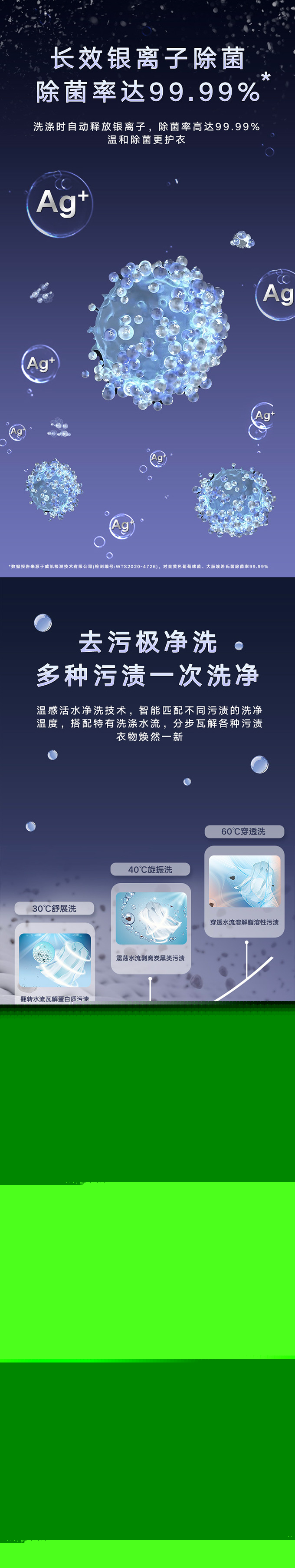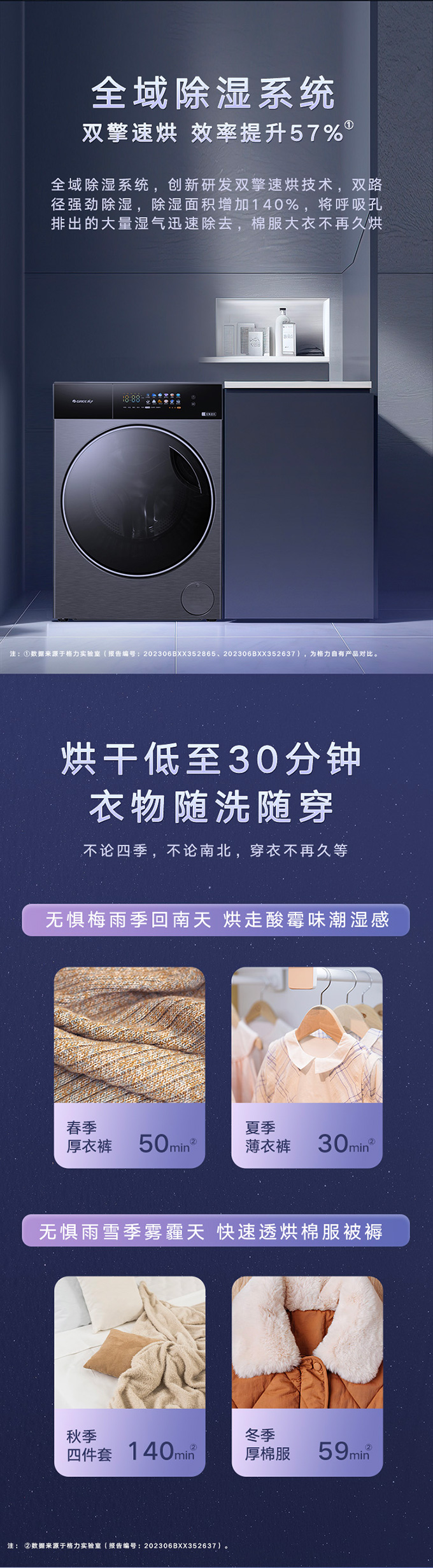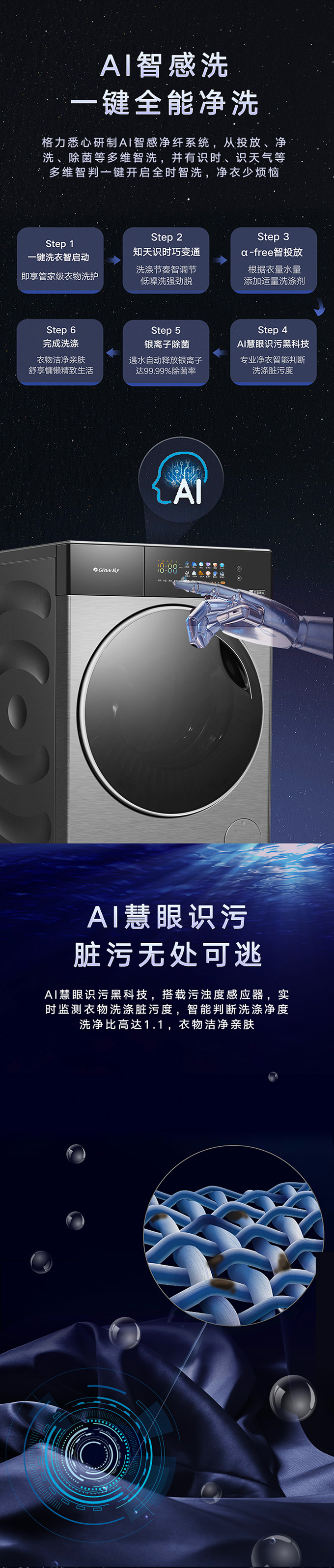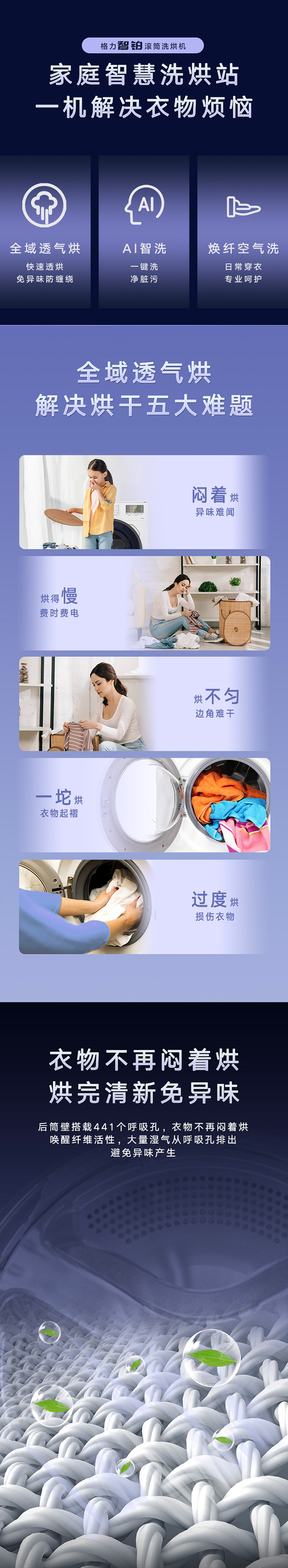 全域透氣烘,衣物不在悶著烘。AI智能感應(yīng),臟污一鍵洗凈。